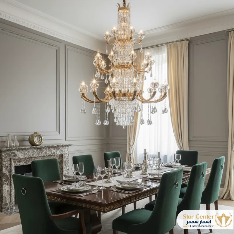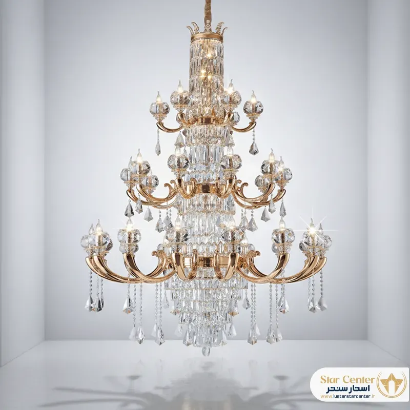 - این لوستر برای سقفهای با چه ارتفاعی مناسب است؟مدلهای تک طبقه (۶ و ۸ شاخه) برای سقفهای با ارتفاع استاندارد (حدود ۲.۸ تا ۳.۲ متر) مناسب هستند. مدلهای چند طبقه (۱۰+۵ و ۱۲+۶) برای فضاهایی با سقف بلند (بالای ۳.۵ متر) مانند لابیها، سالنهای دوبلکس و ویلاها طراحی شدهاند تا جلوه و عظمت خود را به بهترین شکل به نمایش بگذارند.
