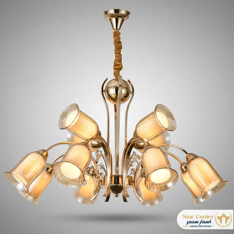 این لوستر کلاسیک با بدنه فلزی طلایی و حباب‌های بلوری، نور یکنواختی از لامپ‌های E27 تولید می‌کند. در مدل‌های مختلف با 3، 5، 6، 8 و 12 شاخه و ابعاد متنوع موجود است.