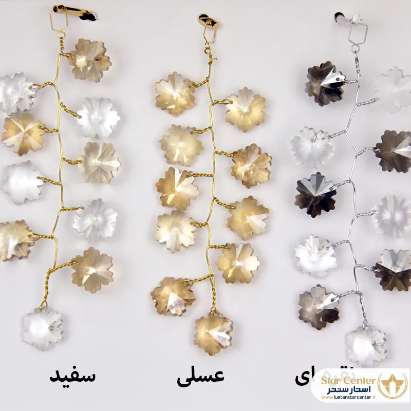 | رنگ بدنه و کریستال | طلایی: کریستال سفید، سفید عسلی، عسلی کروم: کریستال دودی |