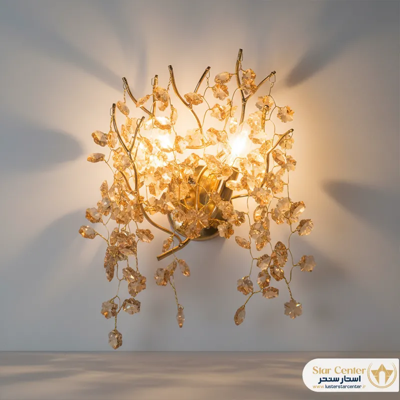 - برای فضای مدرن، کدام رنگ از این دیوارکوب درختی پیشنهاد میشود؟برای فضاهای مدرن و مینیمال، مدل کروم با کریستالهای دودی انتخاب هوشمندانهای است، زیرا به خوبی با رنگهای خنثی و المانهای فلزی دیگر هماهنگ میشود.