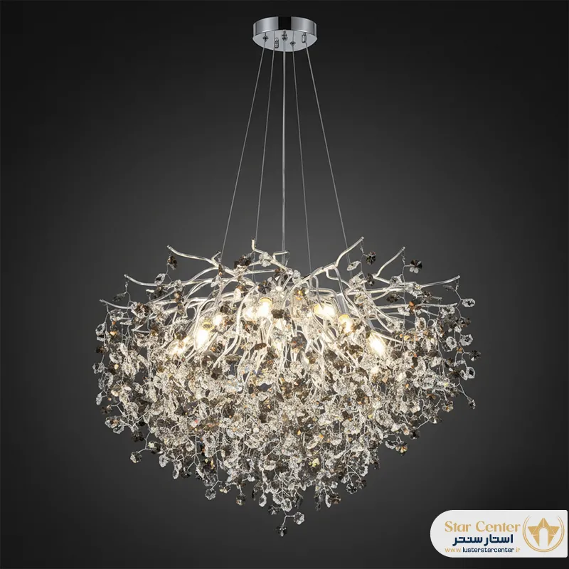 لوستر درختی با آویزهای کریستالی در ابعاد مختلف، با بدنه آلومینیومی نرم و منبع نوری E14. این مدل در رنگ‌های طلایی و کروم (کریستال دودی) موجود است و شاخه‌های نشکن و قابل تنظیم آن، امکان تنظیم نور دلخواه را فراهم می‌کند. این مدل به‌صورت دیواری، رومیزی و کنار سالنی نیز قابل عرضه است.