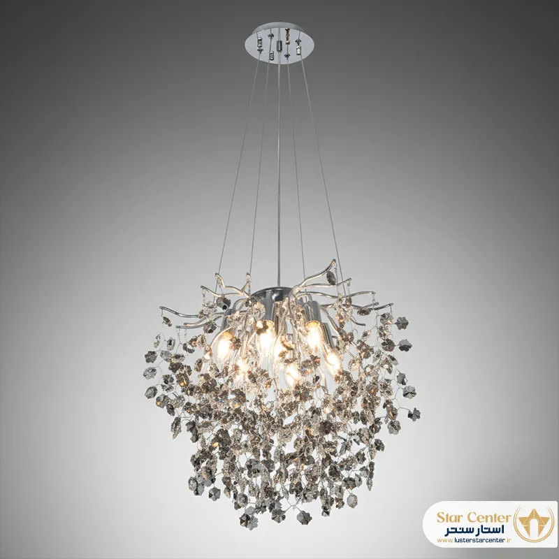 2. چگونه بین رنگ طلایی با کریستال روشن و کروم با کریستال دودی انتخاب کنم؟انتخاب رنگ به سبک دکوراسیون شما بستگی دارد. رنگ طلایی با کریستال‌های روشن (سفید و عسلی) جلوه‌ای گرم، لوکس و کلاسیک‌تر دارد و با رنگ‌های گرم هماهنگ است. در مقابل، رنگ کروم با کریستال دودی، ظاهری مدرن‌تر، سردتر و کمی رسمی‌تر ایجاد می‌کند و برای دکوراسیون‌های مدرن و مینیمال با پالت رنگی خنثی یا سرد، انتخابی عالی است.