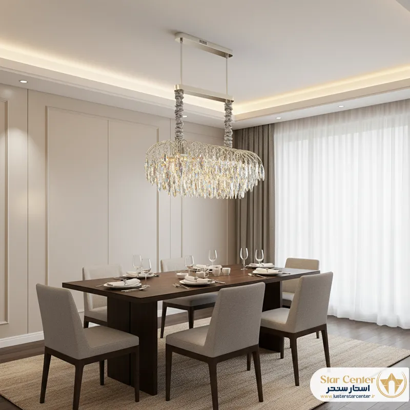 - انعطافپذیری در انتخاب: عرضه در دو طول ۸۰ و ۹۰ سانتیمتر، این لوستر را برای فضاهای مختلف از میزهای ۶ نفره تا ۱۰ نفره مناسب میسازد.