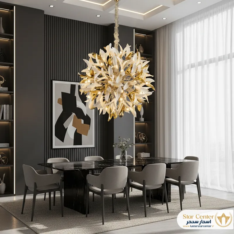 - این لوستر با چه سبک دکوراسیونی بهترین هماهنگی را دارد؟این محصول به دلیل طراحی ترکیبی، انعطافپذیری بالایی دارد. بهترین جلوه را در دکوراسیونهای مدرن، مینیمال و معاصر دارد اما میتواند به عنوان یک عنصر متضاد و جذاب در فضاهای نئوکلاسیک نیز به کار رود.