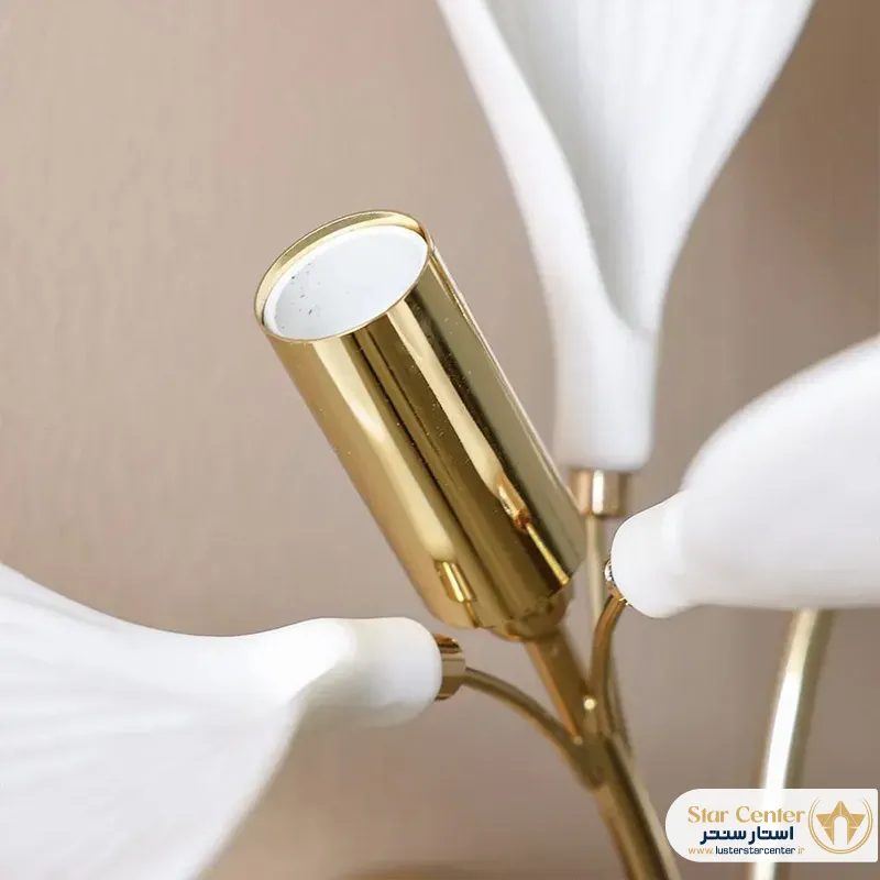 دیوارکوب مدرن با بدنه فلزی آبکاری فورتیک و برگ‌های سرامیکی نیمه‌شفاف، نوری ملایم و گرم ایجاد می‌کند. طراحی الهام‌گرفته از طبیعت، آن را به انتخابی هنری و دکوراتیو برای فضاهای معاصر مثل نشیمن، راهرو یا لابی تبدیل کرده است. هماهنگ با لوسترهای شاخه‌دار همین مجموعه، جلوه‌ای یکپارچه و لوکس به دکوراسیون می‌بخشد.