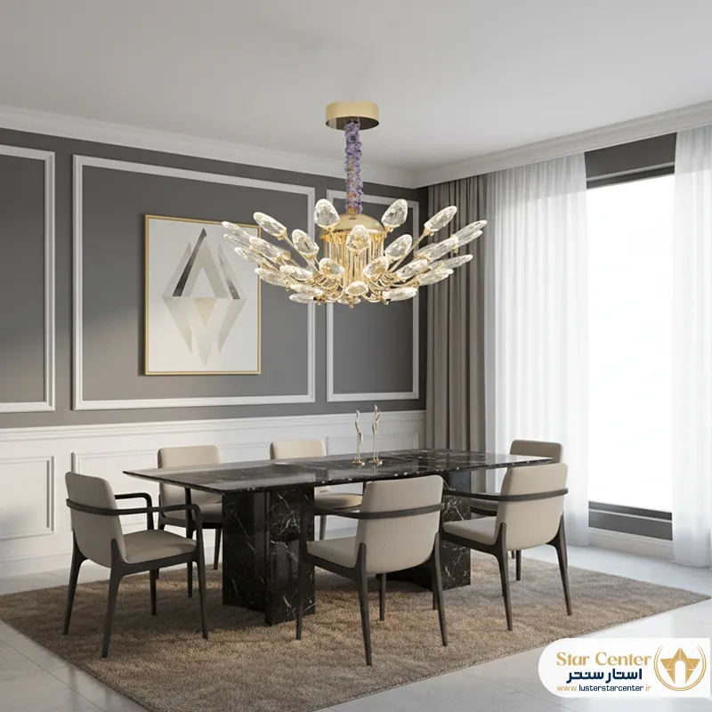 کریستالهای خاص و منحصر به فرد این لوستر، نور را به زیبایی منعکس کرده و فضایی گرم و دلپذیر ایجاد میکنند. اگر به دنبال ترکیبی از کیفیت، دوام و طراحی مدرن هستید، این لوستر انتخابی بینظیر برای شما خواهد بود.