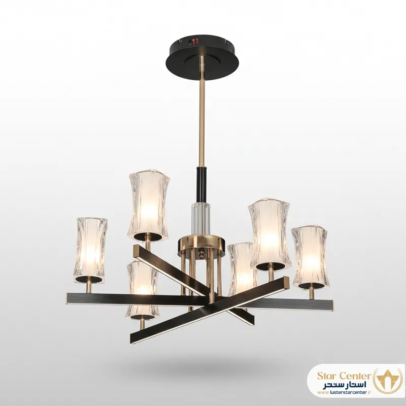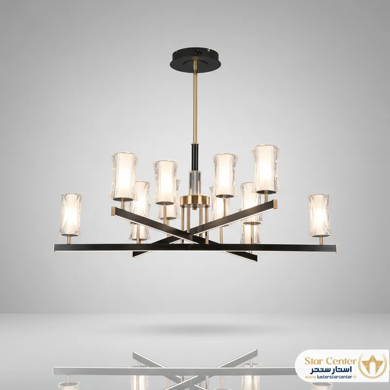 لوستر نئونی مدرن با رنگ مشکی و طلایی و جنس آلومینیوم و فلکسی، نوری یکنواخت و شیک به فضای شما می‌بخشد. این مدل با تعداد شاخه‌های مختلف (6، 9، 12) و ابعاد متنوع، برای فضاهای مدرن گزینه‌ای مناسب است.