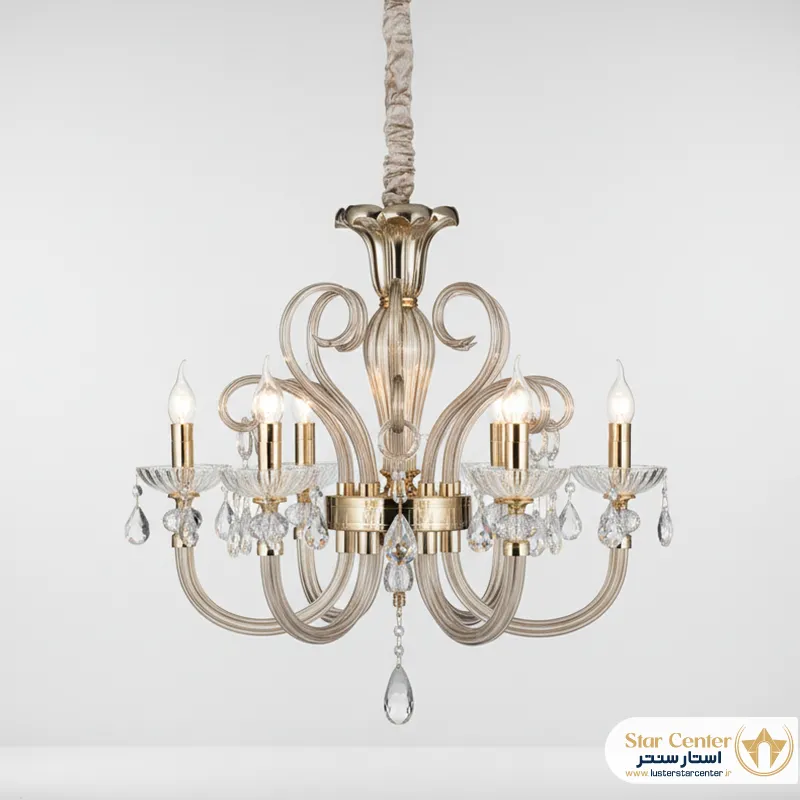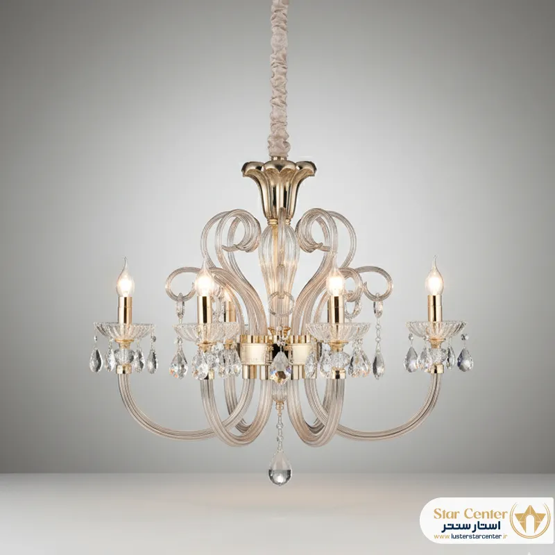 - آیا بدنه این لوستر فلزی است یا ترکیبی از مواد دیگر؟بدنه اصلی این لوسترها معمولاً دارای اسکلت فلزی مستحکم است که با لایههایی از بلور و قطعات کریستالی باکیفیت پوشانده و تزئین شده است تا جلوهای تمام کریستال و درخشان داشته باشد.