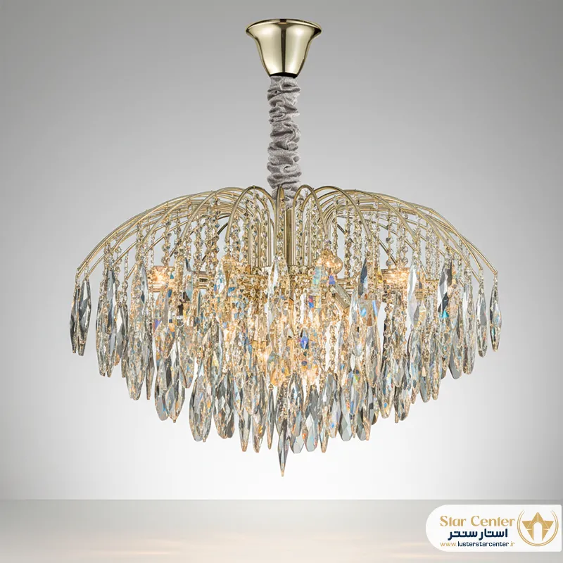 - طراحی لوکس و شیک: ترکیب فلز و کریستال، جلوهای درخشان و بسیار مجلل ایجاد میکند.
